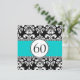 Black and White Vintage Damask Pattern est un design parfait pour ces Invitations de 60e anniversaire avec un accent bleu turquoise. Customisez avec les informations de votre fête d'anniversaire au verso de la carte en utilisant l'option "customiser". Une invitation à l'anniversaire luxueuse et élégante pour elle. Elke Clarke©