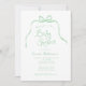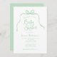 Invitation au Baby shower simple de la corneille verte. Un joli joli arc et ruban à la main, à la mode, avec des polices fantaisistes et amusantes. Simple mais ludique. Affiché en vert et blanc sauge, mais vous pouvez choisir toutes les nouvelles couleurs pour les arrière - plans, les éléments de conception et le texte. Personnalisez le modèle prêt à l'emploi avec toutes les informations nécessaires pour customiser sans effort vos invitations à la douche pour bébé. © Kimbellished, LLC