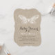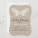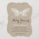 Un script de ruban et un papillon dessiné à la main mettent en avant cette invitation rustique et baby shower sur un arrière - plan de burlap illustré.