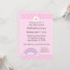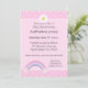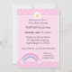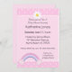 Baby shower arc-en-ciel Invitation avec une fleur blanche. et arrière - plan rose. Customisez les invitations pour les douches pour bébés avec les détails de votre fête.