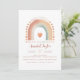 Invitations aimaient les gens à célébrer avec cette invitation de baby shower arc-en-ciel boho aquarelle terre! Doté d'un arc-en-ciel peint à la main dans des tons doux en terre cuite et roux, ce design neutre pour les hommes et les femmes est parfait pour les baby showers boho, rustique ou d'inspiration nature. Customisez avec vos détails pour un rassemblement chaleureux et fantaisiste.