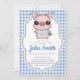 Ce dessin présente un mignon cochon dans un arrière - plan bleu en vichy. Facile à customiser avec vos informations d'événement.