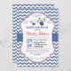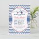 Cette invitation vintage au baby shower d'avion de jouets est accompagnée d'un avion de jouets en rouge, bleu et blanc. Le étiquette a tourné autour de la formulation avec des pois sur le bord en bleu. Le arrière - plan est imprimé en chevron bleu et blanc.
