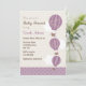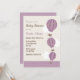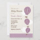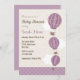invitation Baby shower avec la conception de montgolfières et combinaison de couleurs violettes.