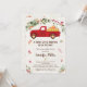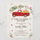 Cette invitation présente de mignonnes feuilles d'automne et un camion rouge rempli de foin et de citrouilles.