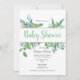 Invitation au Baby shower de feuillage vert et or