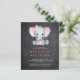Invitations amis et famille pour honorer la maman à être avec cette invitation de Baby shower moderne à l'éléphant mignon.