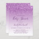 Cette invitation baby shower branchée présente une bordure de parties scintillant violet scintillante sur un arrière - plan mauve à l'ombre. Les mots "Baby shower" et le nom de la maman-to-be apparaissent dans un script d'écriture manuscrite violet, le texte restant étant en police sans serif violet.