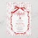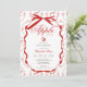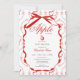 Organisez un baby shower d'automne élégant avec cette élégante invitation Apple of Our Eye. Doté de rubans rouges audacieux, d'une illustration de pomme classique et d'une typographie gracieuse, ce design ajoute du raffinement à une douche pour bébé sur le thème du verger ou de l'automne. Personnalisez-le pour en faire le vôtre.