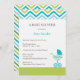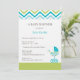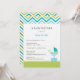 Une invitation au baby shower sur mesure, chère, avec un chariot de bébé en chevron bleu et vert. étiquette de adresse, carte de remerciements et autocollant correspondant.