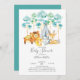 Cute Tribal des animaux de la forêt baby shower invitation avec une scène de forêt de tipis avec un ours, renard, raton laveur, cerf et souris.