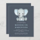 Invitations amis et famille pour honorer la maman à être avec cette invitation de Baby shower moderne à l'éléphant mignon.