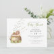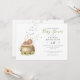 Invitation au Baby shower historique avec un bébé aquarelle dormant sur un pot d'or aux coeurs verts.