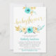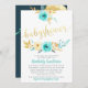 Invitation au Baby shower Floral Gold Turquoise