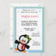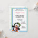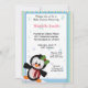 Des invitations mignonnes à la douche bébé pingouin pour les filles seulement. Arrière - plan coloré. Penguin a un joli arc vert et se tient sur un iceberg. Kristi W/Graphic's n Bits.
