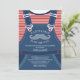 Un petit homme est sur le chemin Baby shower Invitation mettant en vedette la plus jolie paire de salopettes de bébé avec une moustache. Baby shower Unique Boys.