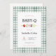 Préparez-vous à allumer le grill et fêtez l'arrivée de votre petit avec cette décontractée invitation de Baby shower Neutral Green Baby-Q ! Doté d'un arrière - plan en vichy vert muet ludique, d'une délicieuse brochette et d'une typographie audacieuse, ce design est parfait pour les couples à la recherche d'une fête barbecue mémorable. Conçu avec une touche de genre neutre, il est idéal pour tout couple ou bébé genre. Que vous planifiez un après-midi plein de savoureux plats, une grande compagnie, ou simplement célébrer l'excitation de votre famille en pleine croissance, cette invitation donne le ton pour un événement joyeux. Le en vichy vert muet ajoute une atmosphère chaleureuse et accueillante, tandis que le texte moderne garde les choses fraîches et amusantes. Parfait pour un baby shower plein d'amour, de rires et de délicieux plats ! Prêt à customiser ? Cliquez simplement sur le bouton "Personnaliser" pour ajouter les détails de votre événement. Choisissez entre des invitations imprimées de haute qualité à envoyer par la poste, ou optez pour un invitation numérique écologique pour partager les nouvelles en ligne. Conception par Ana Garza/Kardz Studio. Si vous avez des questions, veuillez me contacter par l'intermédiaire du conversation Zazzle.