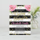 Elégante invitation au baby shower noir et blanc avec accents de parties scintillant rose et or
