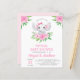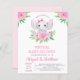 Personnalisez ce Tropical Rose Floral Aquarelle Girly Elephant Baby Baby shower virtuel ou Baby Sprinkle Invitations sur arrière - plan blanc avec votre message et les détails. Cette invitation chic comprend des fleurs roses rousses et une végétation botanique moderne avec une typographie de script mignonne et élégante pour la célébration spéciale Mère à être.