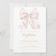 PINK BOW - Cette Invitation Baptême de Coqette Rose Bow Girl est entièrement modifiable, peut être imprimée et envoyée par la poste ou l'évite de baptême peut être partagée par e-mail et les médias sociaux! Cette Invitation à Christening Rose présente un élégant arc de coquette rose avec perles blanches douces et texte or or et rose. Cette Invitation Baptême / Baptême complètera certainement tout Baptême, Baptême ou Première Communion! Consultez notre collection "Pink Bow" pour obtenir des affiches de baptême supplémentaires assorties.
