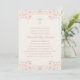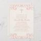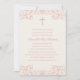 Cette élégante et formelle invitation au baptême ou au baptême des filles présente une jolie croix rose et un cadre décoratif magnifique. Customisez avec les détails de votre événement.