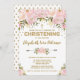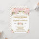 Invitation à baptiser féminine rose et or avec des fleurs d'aquarelle rose et rousse et des confettis dorés saupoudrés