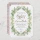 Belle invitation d'inspiration boisée avec un cadre composé de pics de pin, de baies, de laurier, de cônes de pin et de végétation boisée. Les délicats sprigs peints à la main entourent votre texte annonçant votre journée Baptême - avec une croix au fond. Un design simple dans de beaux verts et bruns avec motif à grains de bouleau en gris et marron à l'envers.