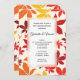 Invitez vos invités à célébrer les jeunes mariés le matin après leur cérémonie de mariage automnal en septembre, octobre ou novembre avec l'invitation naturelle au brunch après mariage sous les feuilles d'automne lumineuses. Cette élégante invitation personnalisée pour le petit-déjeuner ou le déjeuner après mariage automnal présente des feuilles d'automne rouges, jaunes et orange sur fond blanc.