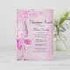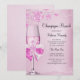 Invitation au brunch au champagne. Verre à champagne élégant à ruban et jolies roses roses. Veuillez noter : Toutes les images sont plates !
