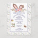 Les oreilles de lapin de Pâques avec des fleurs roses ornent le haut de cette invitation.
