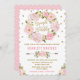 Jolie invitation à la douche nuptiale avec des fleurs d'aquarelle rose et rousse et des confettis d'or saupoudrés