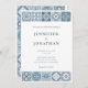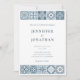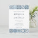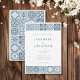 Commencez votre voyage avec cette invitation avec des tuiles complexes inspirées des motifs dans les tons bleu et gris. Les détails délicats évoquent l'impression de carrelage méditerranéen qui ouvre la voie à une fête élégante et tranquille
