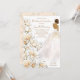Jolie mariée à l'aquarelle dessinée à la main avec des cheveux blonds dans sa robe mariage et entourée de magnolias. Le dos de l'invitation comporte des anneaux mariages en boîte avec les initiales de la mariée et du marié.