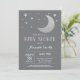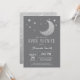 Au-dessus de l'invitation de baby shower de lune. Parties scintillantes et gris argentés. Pour davantage de personnalisation, cliquez sur svp la "personnaliser il" bouton et utilisez notre outil de conception pour modifier ce modèle.
