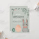 Cette charmante invitation à la célébration de Pâques présente une illustration adorable de lapin associée à des œufs de Pâques pastel doux et à des éléments botaniques délicats sur un fond neutre apaisant. La palette de couleurs douces crée une atmosphère chaleureuse et accueillante, parfaite pour les dîners de Pâques, les réunions de famille, les célébrations printanières ou les événements de vacances. Conçue avec un style ludique mais élégant, cette invitation est entièrement personnalisable avec les détails de l'événement, ce qui la rend idéale pour les occasions de Pâques destinées aux enfants et aux familles.