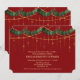 Invitation au dîner de fiançailles de la fête des vacances de Noël avec guirlande de couples, houx, gui et lumières à cordes dorées pailletées