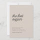 Si vous aimez le classique, cette invitation au style simple et accueillant vous conviendra parfaitement. L'invitation présente un design élégant, avec un arrière - plan beige aux détails délicats de la fête, magnifiquement scénarisés dans un texte marron foncé dégageant un air de sophistication. Bienvenue invités à votre dîner de répétition dans le style. La couleur et le texte de l'Arrière - plan sont modifiables.