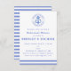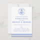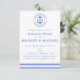 NewParkLane - Faire-part de dîner de répétition nautique personnalisé, avec une ancre aquarelle bleue dans un cadre circulaire, contenant vos noms et date de mariage. Au dos et en bas de l'invitation, un motif rayé bleu marine.