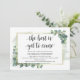 Eucalyptus verdoyant, le meilleur est encore à venir, carte Mariage Rehearsal Dinner Invitation.Planifier un dîner de répétition mariage avec le futur marié et le futur Groom, avant leur GRANDE journée ? Invitation les invités avec cette carte Rustique Mariage Rehearsal Dinner Invitation Card. Ajoutez les détails de votre souper de répétition en caractères noirs correspondants / lettrage.