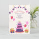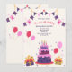Une invitation festive d'anniversaire avec des drapeaux de fête, des ballons, des cadeaux et un gâteau d'anniversaire à trois niveaux avec quatre bougies. (Le vecteur d'anniversaire créé par freepik - www.freepik.com).