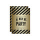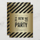Invitation de la fête du Nouvel An 2014 Carte Flat moderne avec texte noir, bande dorée noire et métallique arrière - plan (Note : effet photographique en or métallique). Ajoutez vos informations de fête du Nouvel An et votre option papier. Conception par Elke Clarke©.