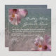 Une invitation à un mariage sur la plage avec une photo arrière - plan d'eau de mer limpide et pétillante. Photos de fleurs d'hibiscus roses aux coins supérieur gauche et inférieur droit. Personnalisez le texte blanc avec le détail de votre événement. À l'arrière, vous trouverez un arrière - plan d'eau de mer.