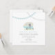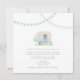 faire-part de mariage illustrant une remorque vintage bleue garée dans l'herbe. Le remorqueur possède une boîte de fenêtre remplie de marguerites et de vêtements aux yeux noirs. Bleu et grisé au sommet. Personnalisez le texte avec les détails de votre occasion. Recherchez les objets correspondants chez Jill's Paperie.
