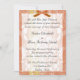 Beau faire-part de mariage formel, réalisé dans un style damas pêche graphique, avec des graphiques d'un petit arc satin sur le dessus. Customisez tous les champs de texte à vos besoins. Modifiez également le style de texte et la couleur si vous le souhaitez.
