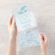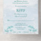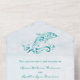 Invités Invitations à votre prochain mariage avec une invitation de mariage tout en un Dolphin Turquoise. Le design Invitation présente un dauphin de style métallique contre un arrière - plan muet des vagues océaniques orné d'élégants rouleaux avec une carte RSVP perforée. Personnalisez avec les noms du marié et de la mariée ainsi que la date et l'emplacement du mariage. Papier à lettres mariage supplémentaire disponible avec cette conception aussi.