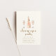 Ce modèle d'invitation à une soirée sur le thème français élégant présente un design chic avec une bouteille de champagne au centre, flanquée de deux verres à champagne scintillants de chaque côté. La bouteille et les verres sont subtilement détaillés, évoquant un sentiment de sophistication et de célébration. En dessous de ce centre de table, les détails de la fête sont magnifiquement affichés dans une police française ludique mais élégante, ajoutant une touche d'authenticité à l'ensemble du thème. Le modèle capture l'essence du charme parisien, ce qui le rend parfait pour une soirée remplie d'élégance et de joie de vivre.