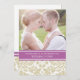 Élégant voeu de mariage renouvelle des invitations personnalisées modèles photo dans le chic et élégant et contemporain sable taupe tan brun, violet brillant orchidée violet radiant et blanc classique vintage damas motif floral avec texte entièrement personnalisable pour inclure vos détails de la cérémonie de renouvellement vow. Communiquez avec nous pour obtenir une couleur personnalisée.