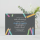 Un tableau noir, des crayons colorés, un aiguilleur de crayon et une règle agrémentent l'invitation à l'anniversaire de ce professeur. Changez l'année arrière - plan pour refléter l'année d'anniversaire que vous fêtez.