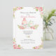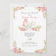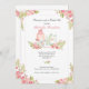 Une belle invitation florale à un thé de mariage avec des fleurs roses, un gâteau de circonstance et une théière.<br/>() La carte est facile à personnaliser avec votre libellé, police, couleur de police, options de forme de papier et choix parmi six types de papier.<br/>() Pas exactement ce que vous cherchez ? Tous nos produits peuvent être conçus sur mesure pour répondre à vos besoins sans frais supplémentaires.<br/>() Contactez-nous simplement à askpixieprints@aol.com.<br/>() Produits coordonnés disponibles : Demandez-nous !