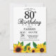 Invitation au tournesol 80e anniversaire. Fleurs florales et Arrière - plan blanc. Country Vintage Retro. Les femmes, anniversaire. 12e 13e 15e 16e 18e 20e 21e 30e 40e 60e 70e 80e 90e 100e, tous âges. Numérique imprimable. Pour plus de personnalisation, cliquez sur le bouton "Customiser" et utilisez notre outil de conception pour modifier ce modèle.